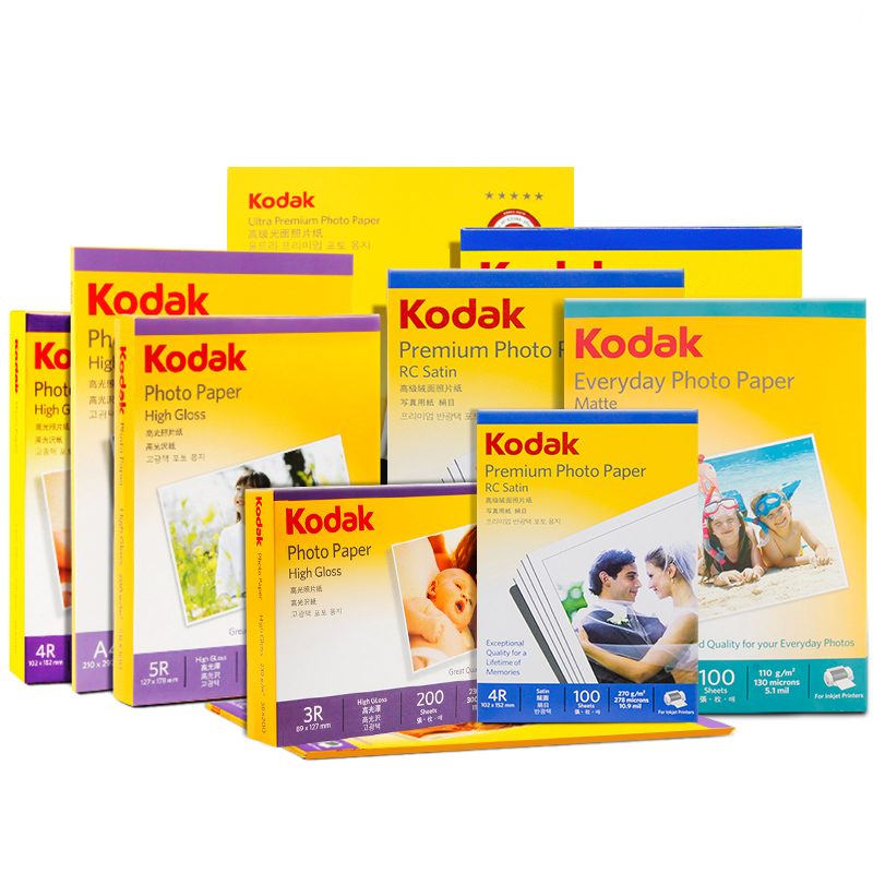A4 Kodak Photo Paper 6 Inch 5 Inch 7 Inch A6 High Gloss Photo Special Paper 4r Waterproof Inkjet Printing RC Photo Paper 270gg Suede 230g 200g 180g Photo Paper Album Paper 3r Image Paper
