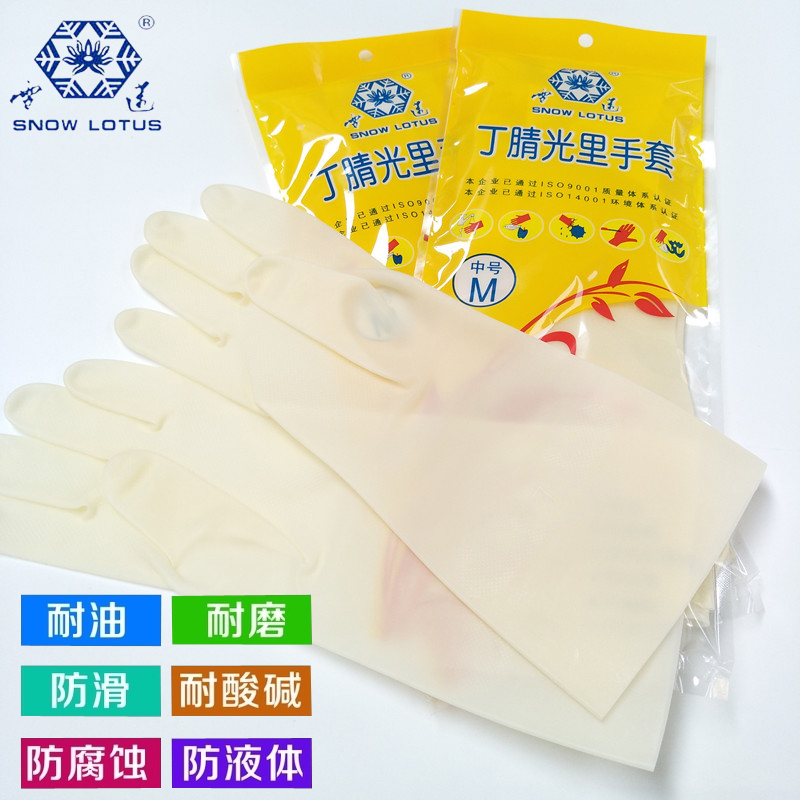 5 pairs of snow lotus white nitrile light lining anti-cutting anti-tear killing fish anti-stab dishwashing rubber latex gloves