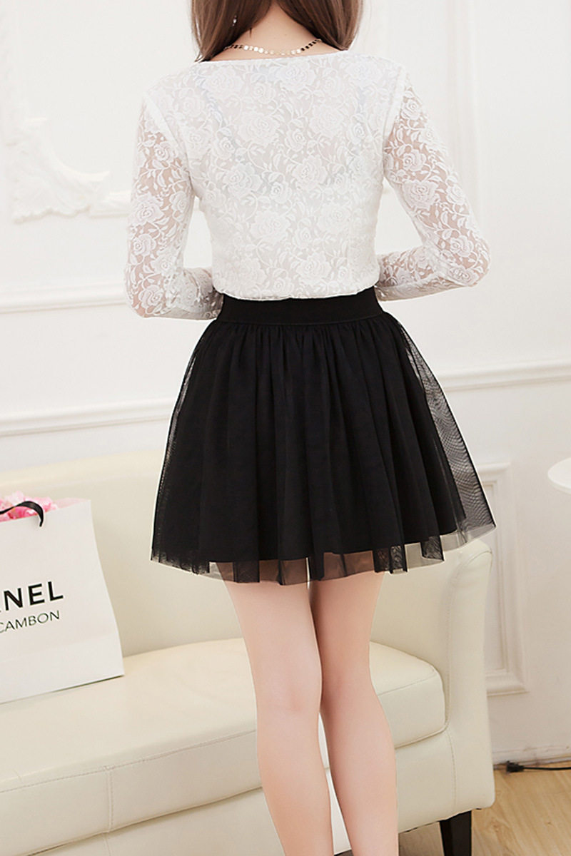 Skirt women's summer new black mesh skirt see-through mid-length high-waisted skirt slim sexy A-line long skirt