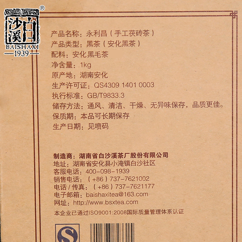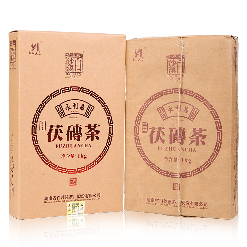 Hunan Anhua dark tea Baishaxi authentic gold hao golden flower Fu brick tea Yonglichang hand-made Fu brick tea 1kg