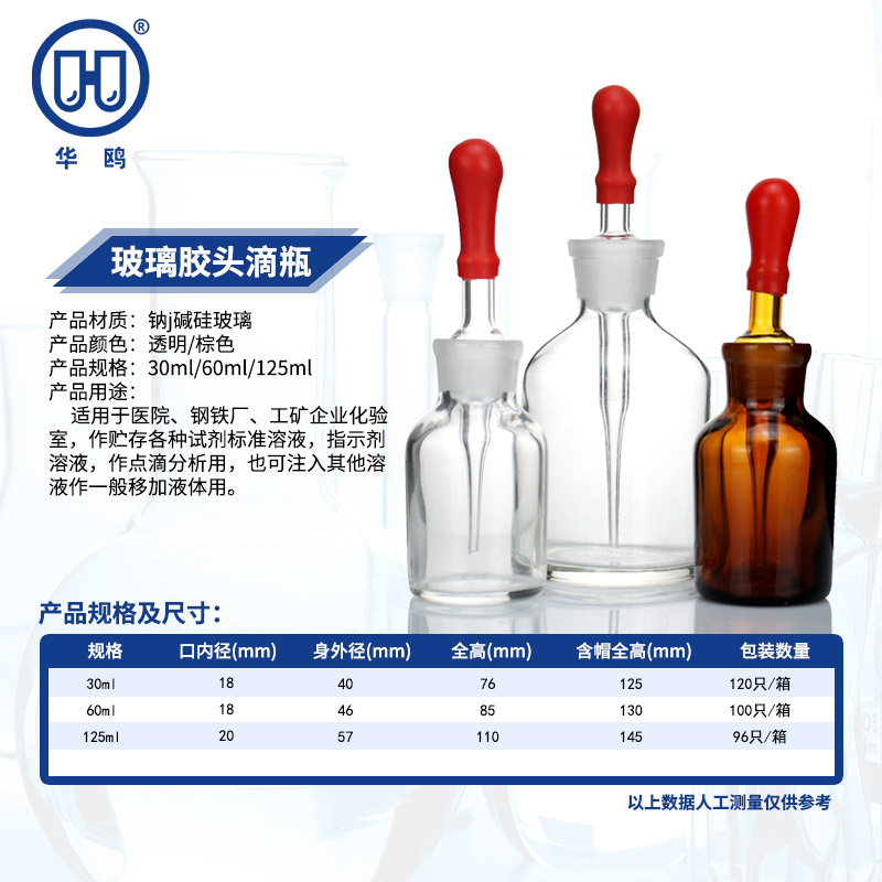 Huagull Chemical Experiment Glass White Drop Bottle Seal Essential Oil Drip Bottle Brown Transparent 30 60 125ml
