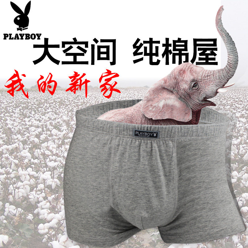 Playboy Men's Underwear Cotton Boxer Large Size Mid Waist Pure Cotton Breathable Underpants Thin Boxer Shorts Head Men