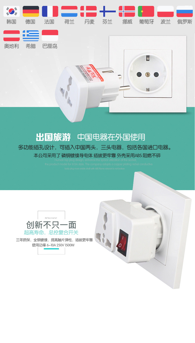 603K (within 2500W) One plug position 609K (1500W) with switch two-plug position 103K (within 2500W) three inserts