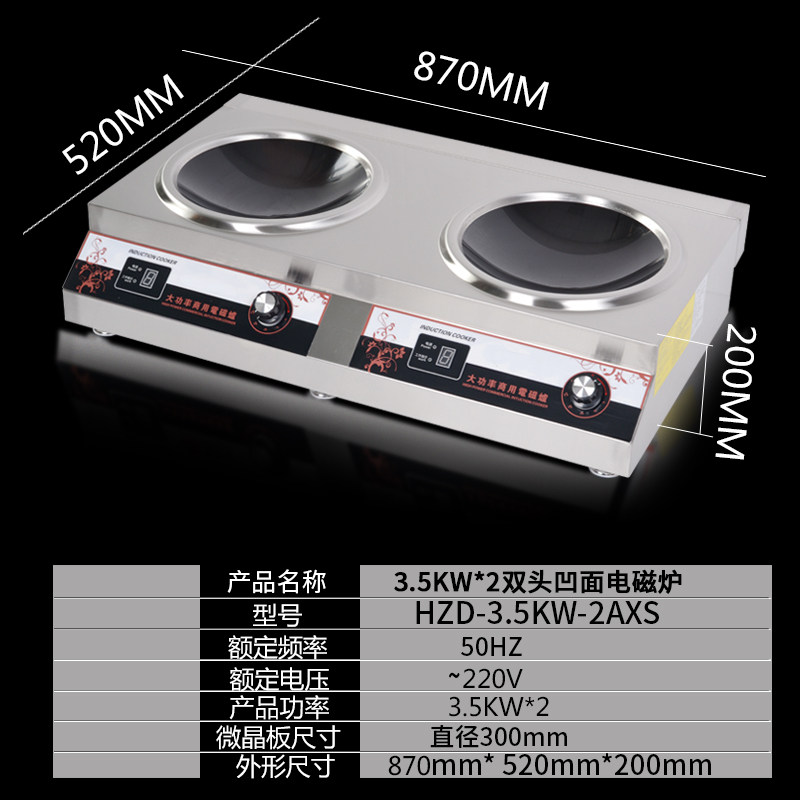 Haizhida commercial induction cooker 3500w double-head concave furnace 3 5KW frying furnace high-power induction cooker double-head combination furnace