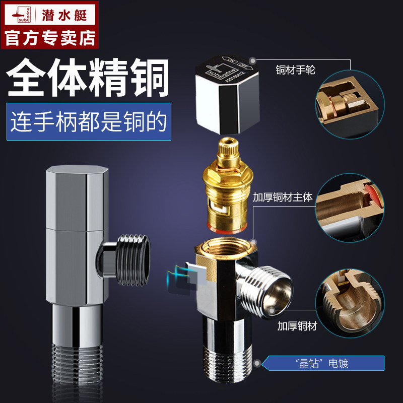 Submarine full-automatic washing machine special faucet connector automatic water stopper anti-falling 46 angle valve all copper