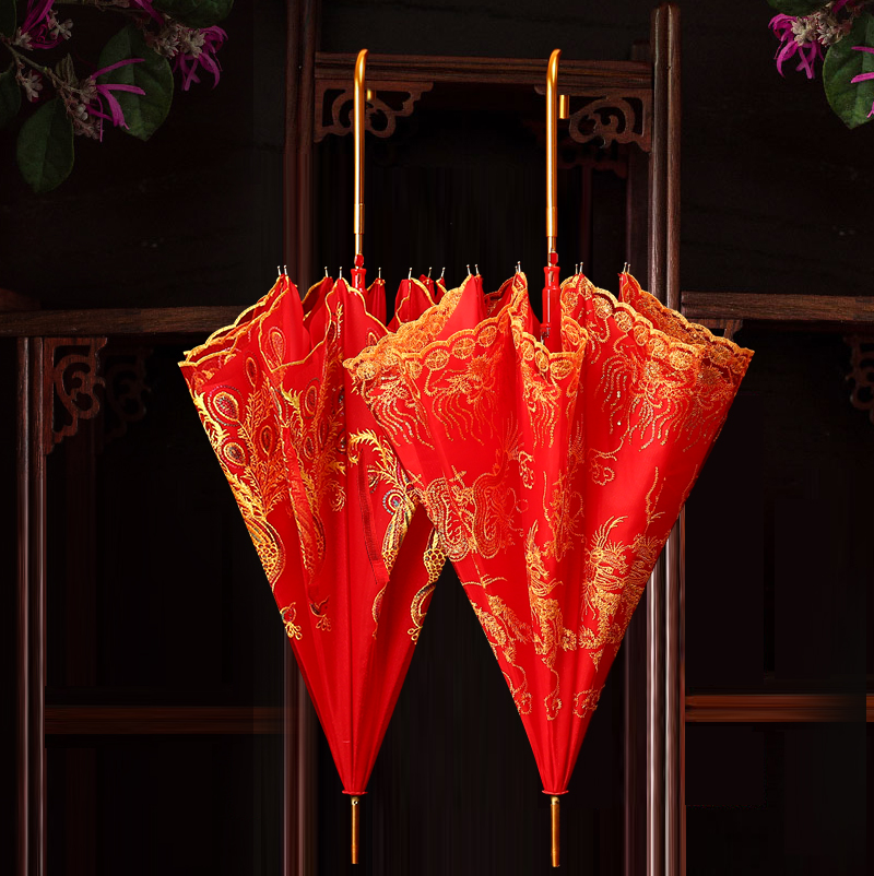Lei Yun wedding lace big red umbrella Wedding long handle umbrella Bride wedding red umbrella Sunscreen parasol craft umbrella