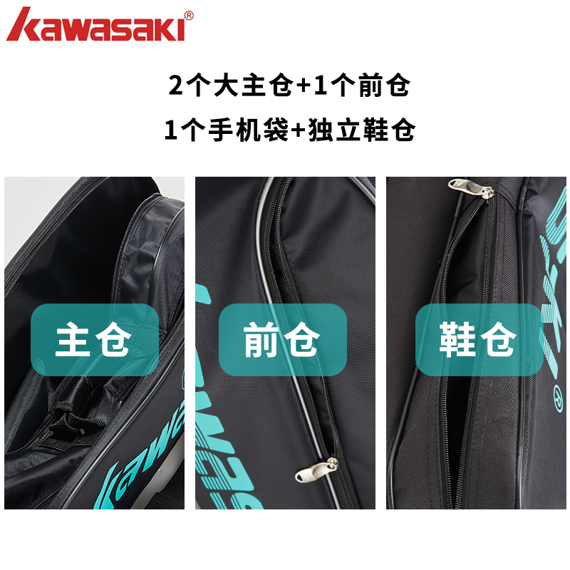 kawasaki Kawasaki Badminton bag Single shoulder double shoulder bag 3 clothes Handbags 6 only Men's and women's tennis racket bag