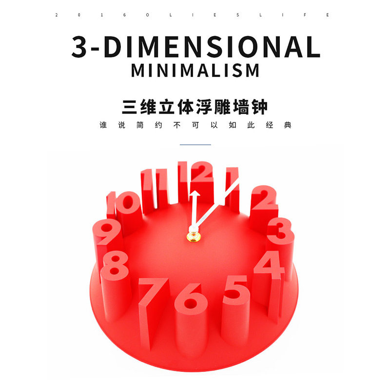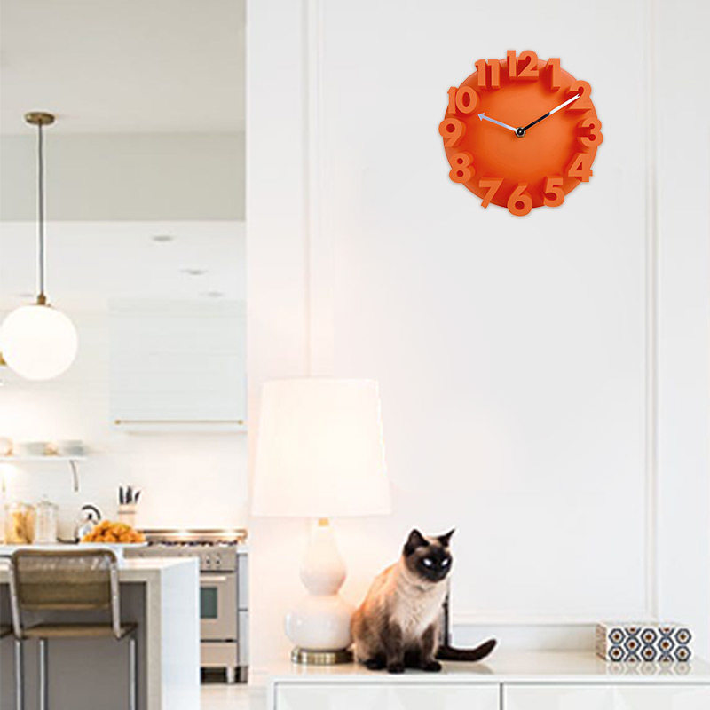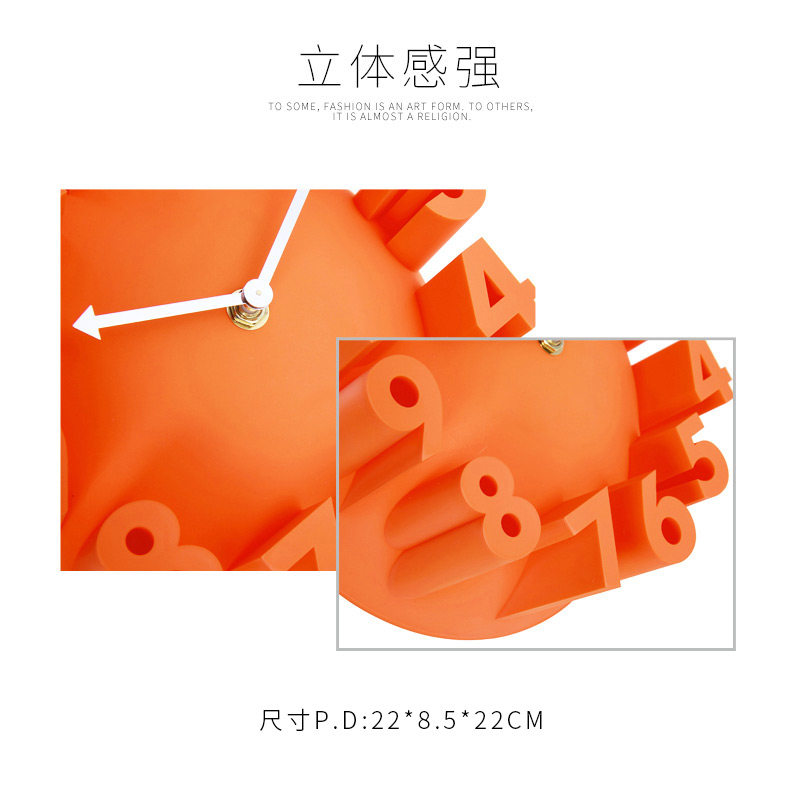 Creative hanging bell digital muted three-dimensional 3D solid relief wall clock dining room Bedroom Wall hanging wall Living room Home Table