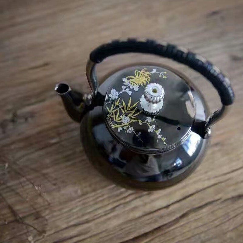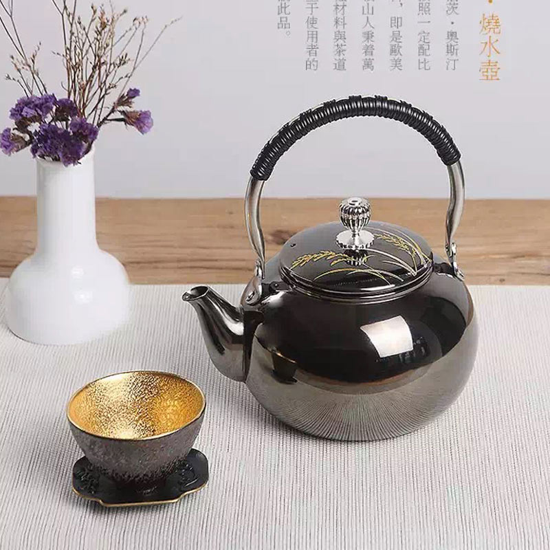 Taiwan Orioles Song Burning Edible Grade Stainless Steel 304 Boiling Kettle Cooking Teapot Boiled Kettle Black Crystal Stove Teapot Tea Set