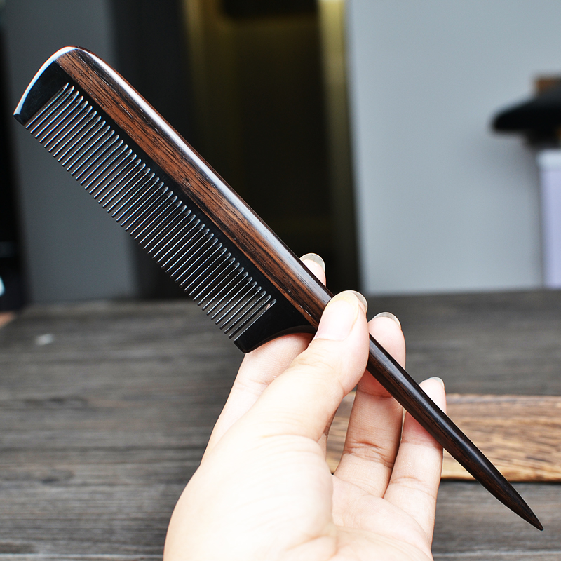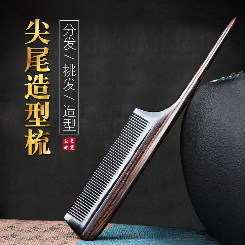 Natural black sandalwood sharp tail comb girl with hair distribution line pick up baby children head comb straight hair horn comb