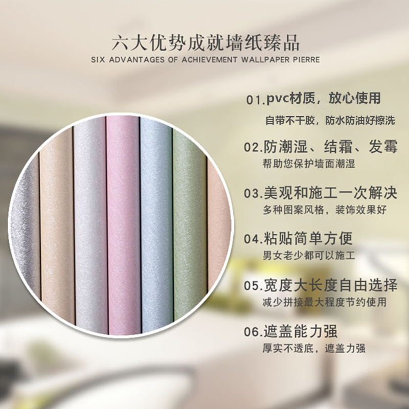 Silk Series Thickened waterproof wallpaper Self-adhesive pure colour wallpaper Dormitory Bedroom Background Wall Stickup Pvc Decoration Patch