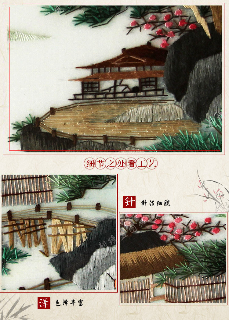 Ou embroidery boutique Tang Yin landscape painting Chinese painting double-sided embroidery ornaments pure hand embroidery craft gifts ornaments gifts