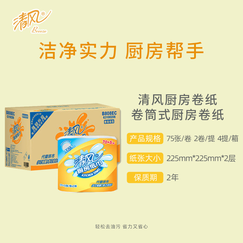 Qingfeng kitchen cleaning large roll paper towel 2 layer 75 sheets full box 8 roll paper absorbent water and oil absorption instead of rag flagship store