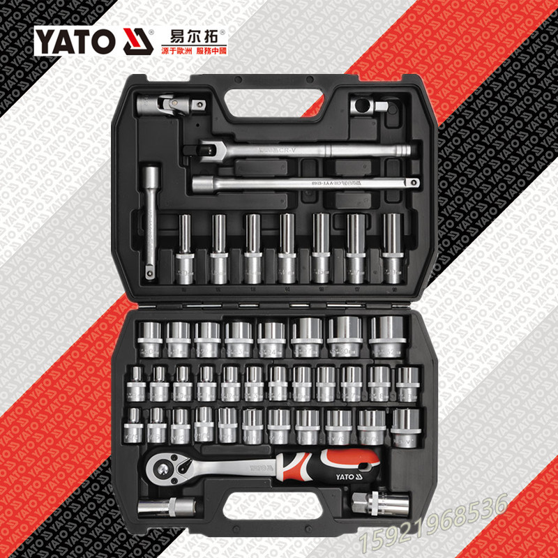 European Yierto Original Auto Repair Portable Toolbox Set Big Flying Ratchet Socket Wrench Set YT-3876
