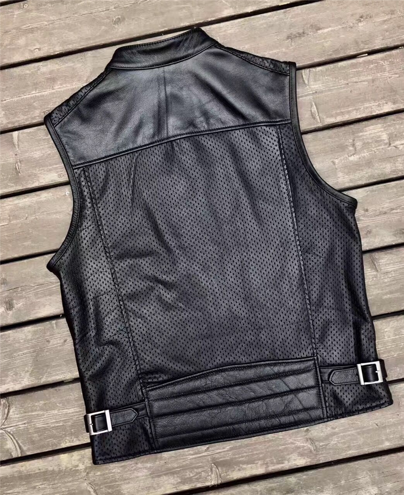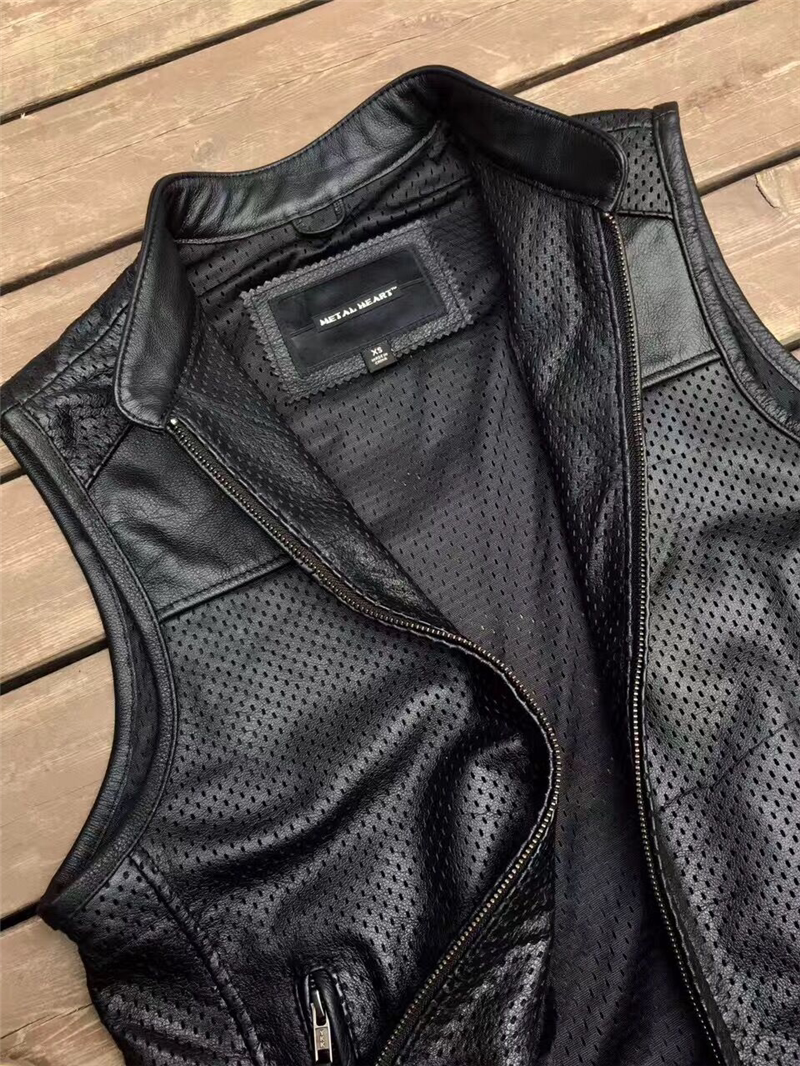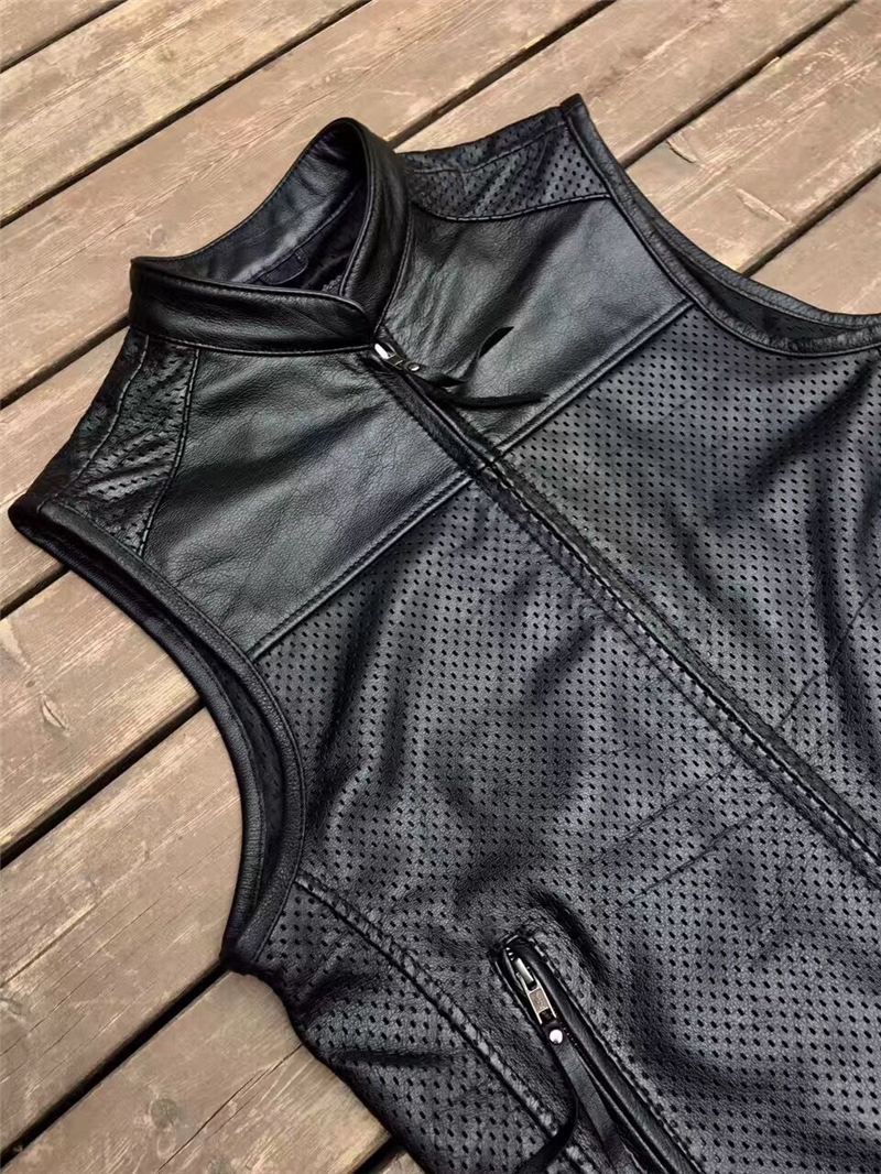 Hareamerican Vintage Retro Locomotive Real Leather Waistcoat Summer Standout Perforated Wind Cool Leather Waistcoat Leather Jacket Leather Vest