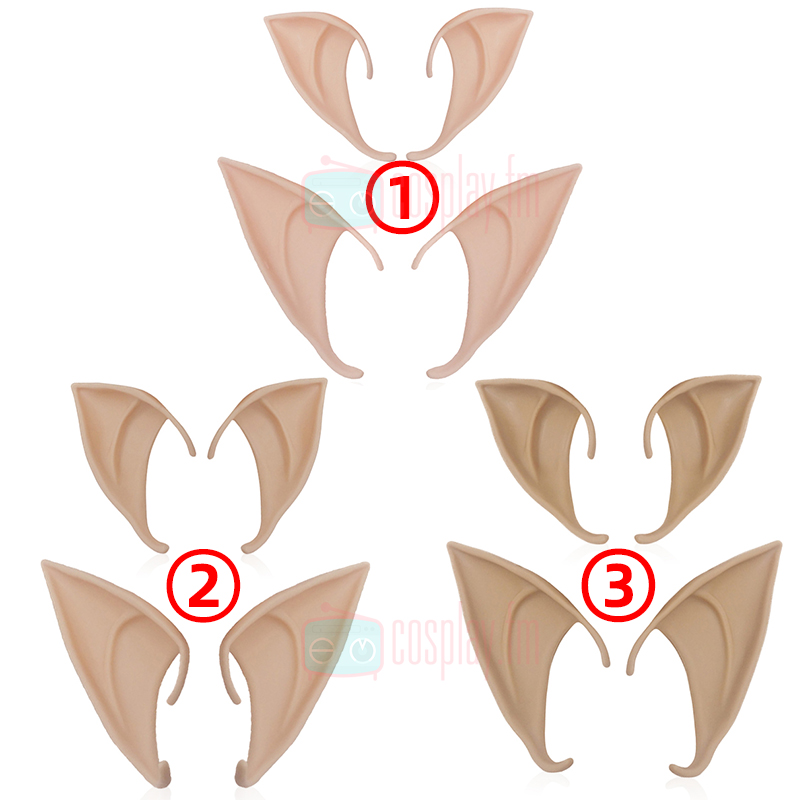 Wig Elf Ears Light Skin 1 (one pair of each size) Elf Ears Skin Color 2 (one pair of each size) Elf Ears Dark Skin 3 (one pair of each size)