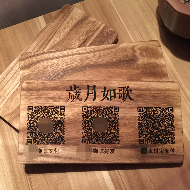 Solid wood engraving sweep code payment card two-dimensional code Alipay WeChat Pay sign custom retro log swing listing