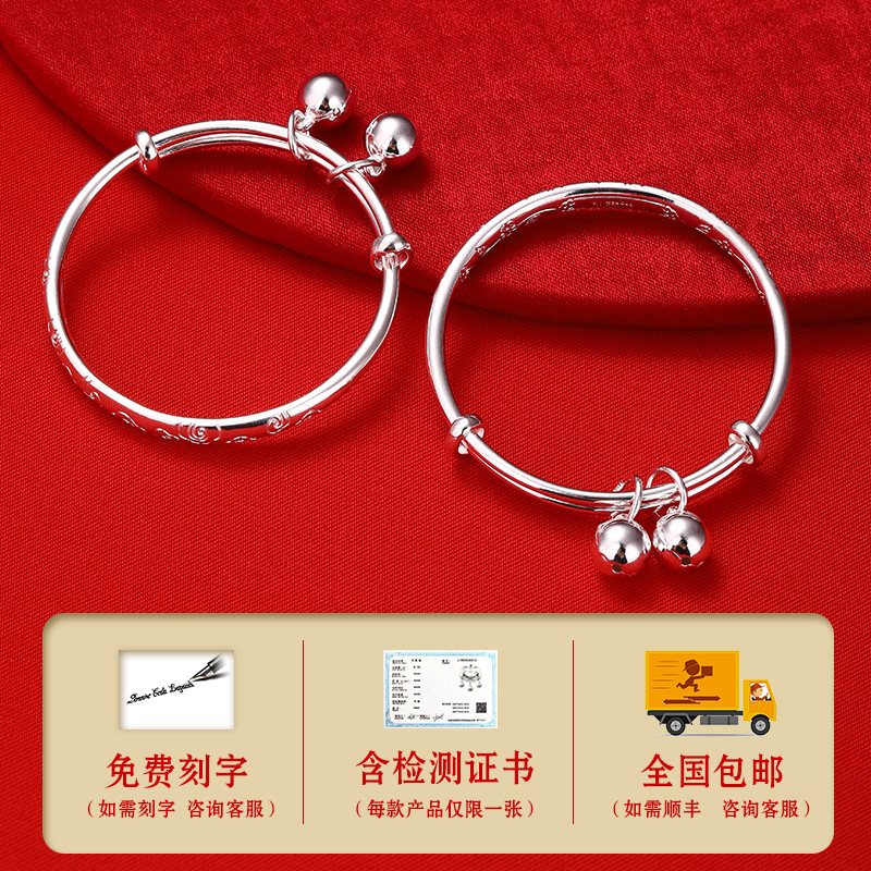 999 foot silver push pull baby bracelet - bell model about 23.3 grams) adjustable (engravable) 999 foot silver push pull baby bracelet about 20.5 grams (adjustable) can be engraved
