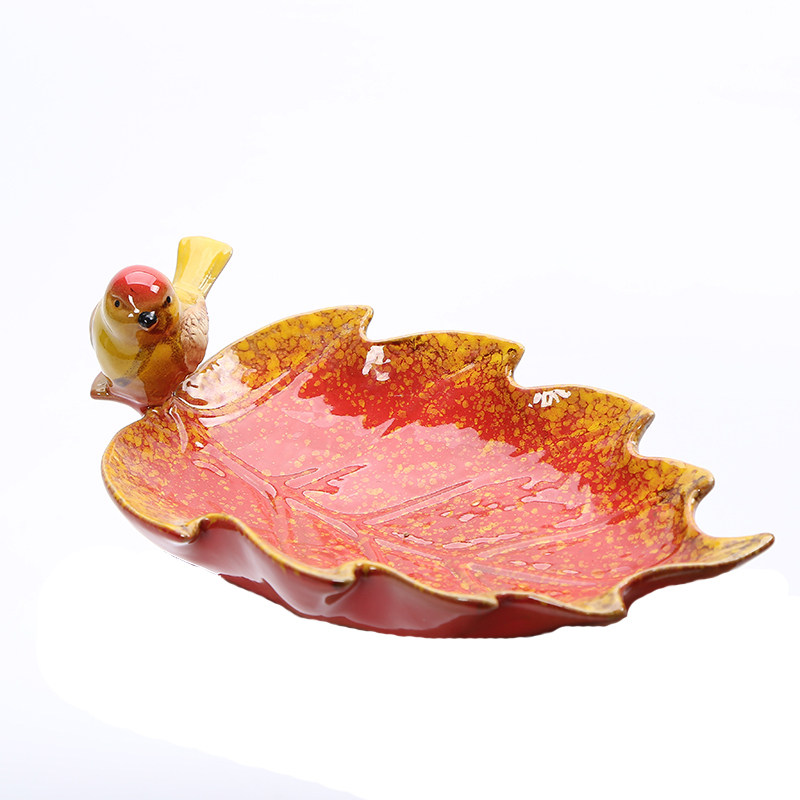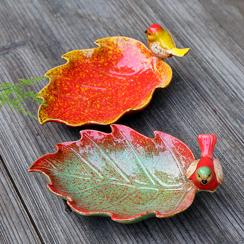 Creative ceramic bird leaf ceramic fruit tray snack tray key tray mobile phone tray dried fruit soap tray ornaments