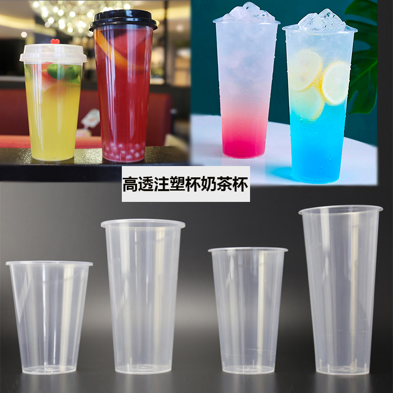 Disposable cup fruit juice milk tea cup high penetration injection cup thickened 90 caliber with lid packaged beverage plastic cup