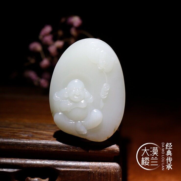 (Desert Loulan)Fidelity Su Gong jade carving Xinjiang Hetian jade seed Guanyin brand Maitreya Buddha male Pixiu pendant
