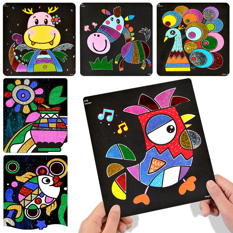 Children Diy Handmade Drawing Sand Painting Children Color Sand Scraped Paper Toys Girl Boy Gel Painting Painted Painted Paint