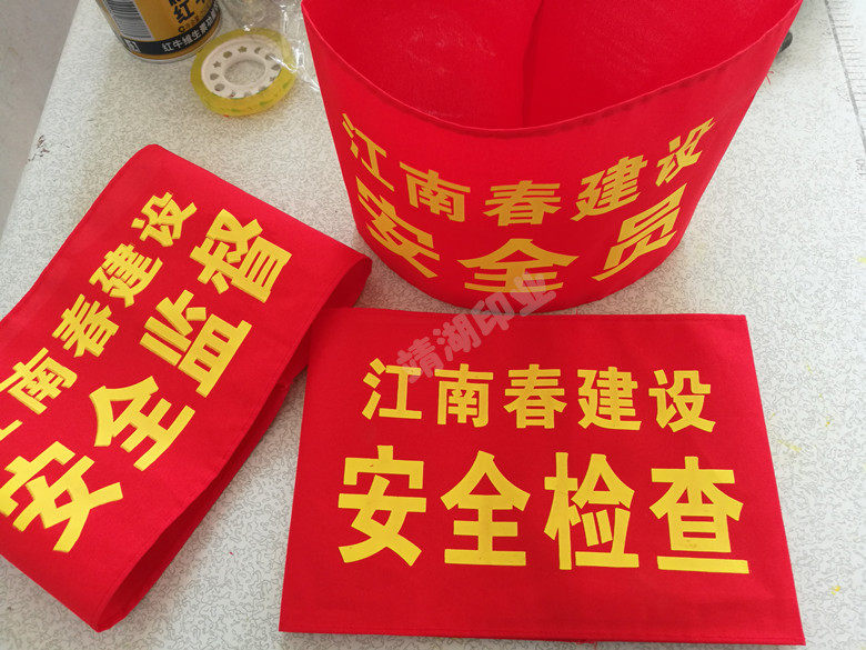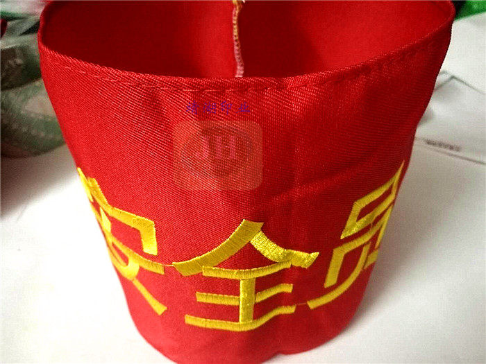 Blank red armband (red without word)T C blended screen printing (red bottom yellow word)Twill embroidery (red, yellow, blue and green) velveteen foam(big red dark red) Chunya textile inkjet (red, yellow and blue, etc