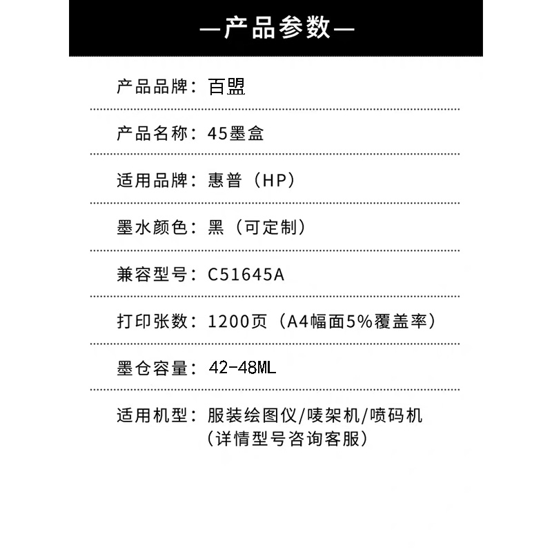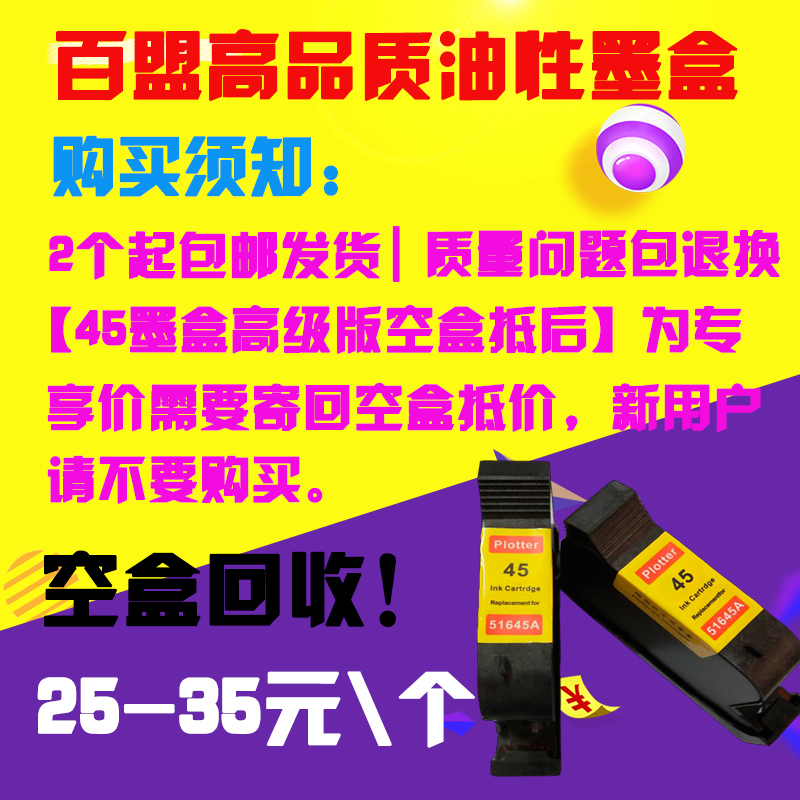 Compatible with HP45 ink cartridges Oily clothing plotter CAD mark frame printer 51645A ink cartridge special yellow label
