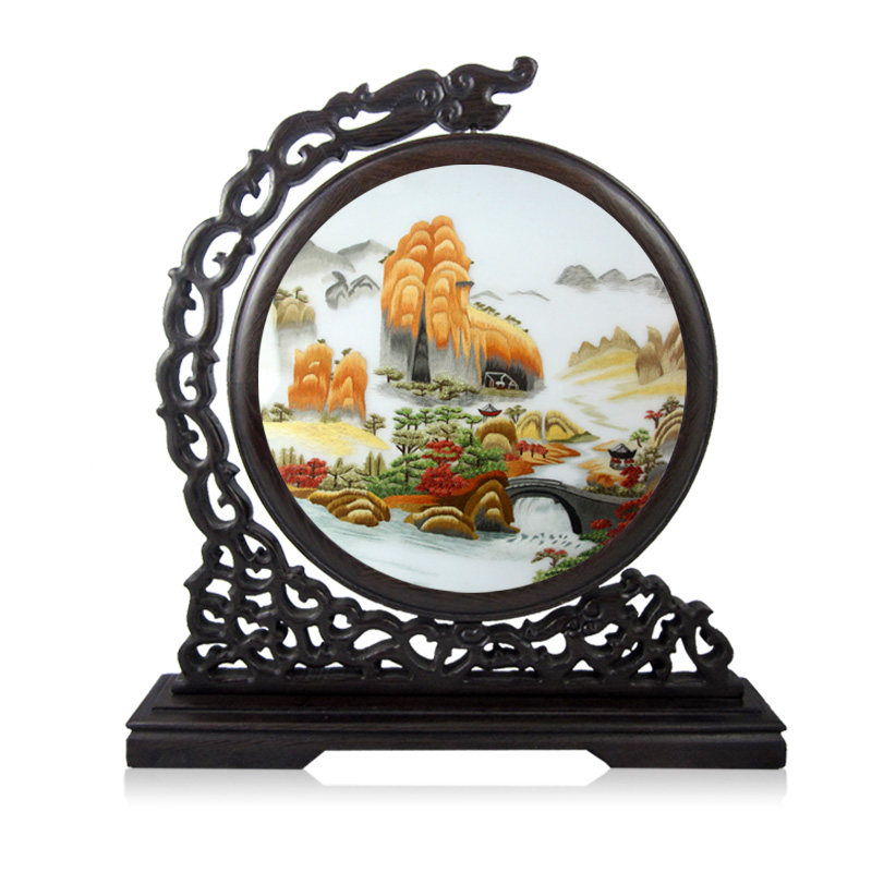 Phoenix Down landscape double sided embroidered with double sided embroidered peacock bifacial embroidered 1-over-two-sided embroidered Year 2-sided embroidered pine crane with double face embroidered on the face of the river