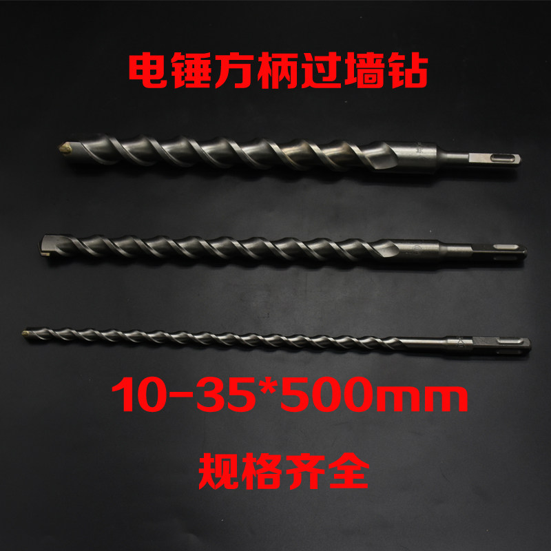 Electric hammer drill bit square handle 4 pit lengthened round handle over wall impact drill alloy threaded concrete cement wall 500mm