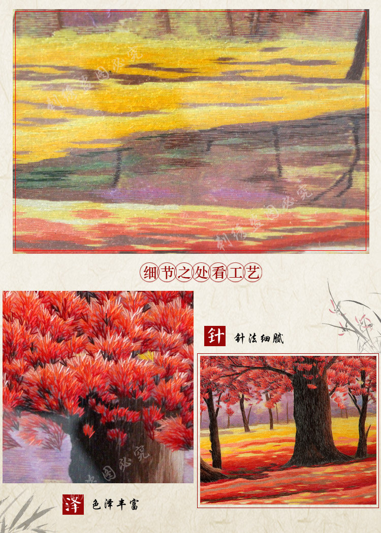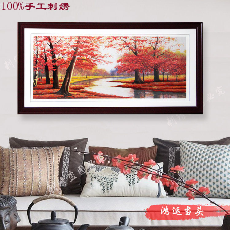 Wenzhou Ou embroidery good luck, good feng shui red maple leaf living room study decoration painting high-end gifts pure hand embroidery