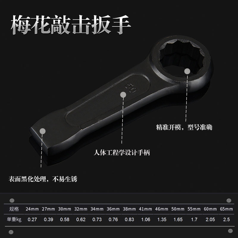 Knock Straight Shank Heavy Plum Wrench Single Head Hexagon Industrial Big Wrench Knock On Dead Wrench Steam Repair Tool