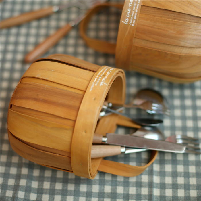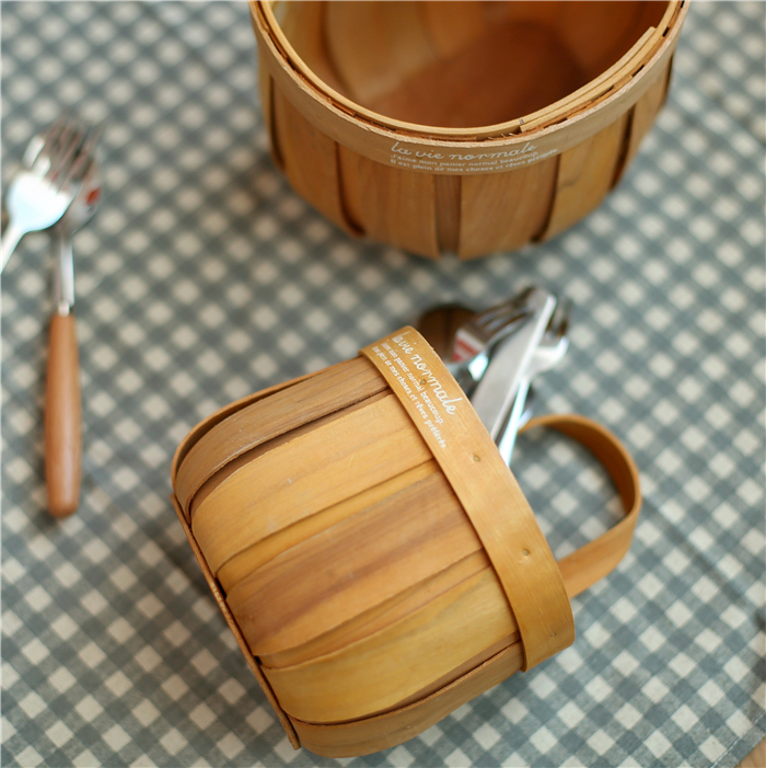 Japanese hand-woven wood chip with handle basket rattan storage basket picnic bread basket fruit basket storage hanging basket