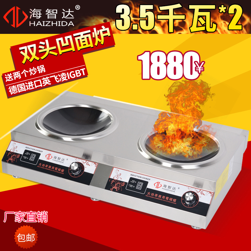 Haizhi Da Commercial Induction Cookstove 3500w Double head concave furnace 3 5KW concave surface frying oven high-power induction cooker double head