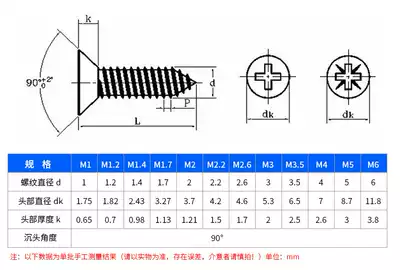 M4 2 304 stainless steel cross countersunk head self-tapping screw flat head self-tapping nail wood screw M4 2*13-16