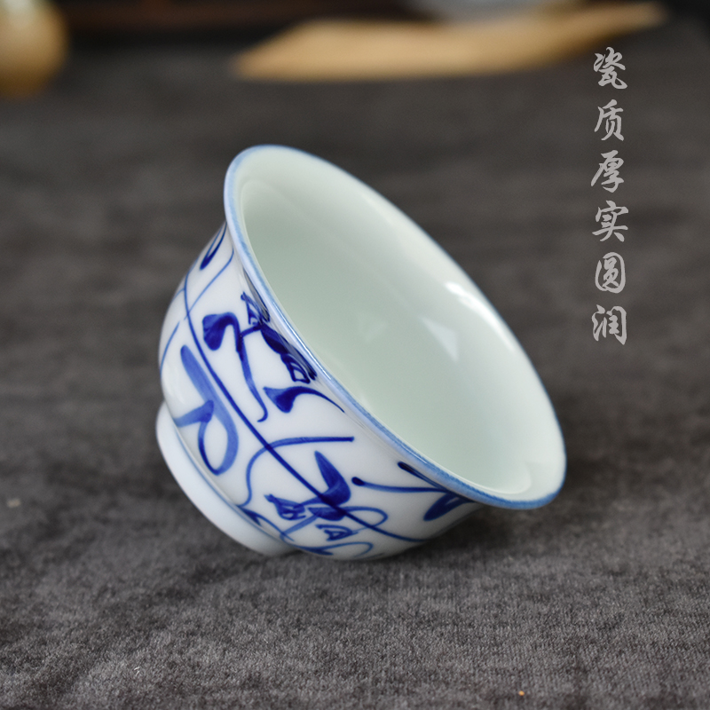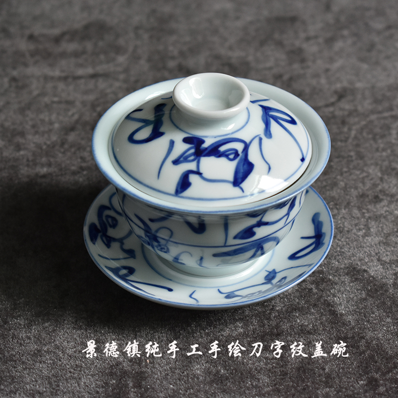 Jingdezhen ancient kiln factory goods hand-painted knife pattern old tea flower blue and white cover bowl Sancai bowl cover bowl boutique