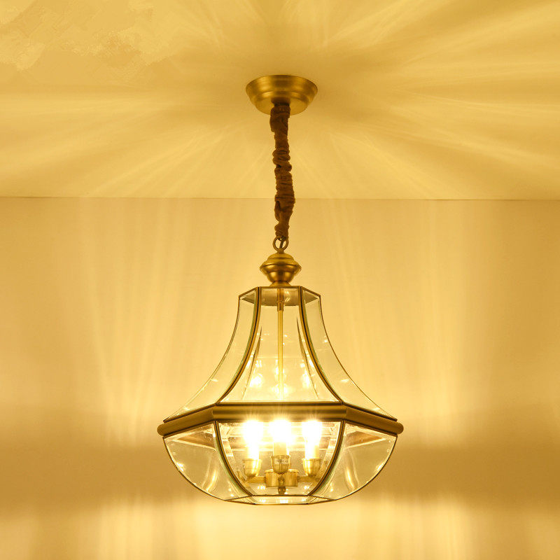 American copper glass chandelier Simple Nordic personality Retro dining room bar light Aisle Attic gazebo canopy light