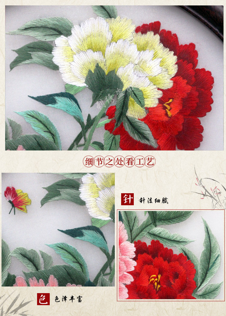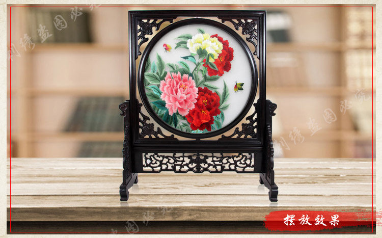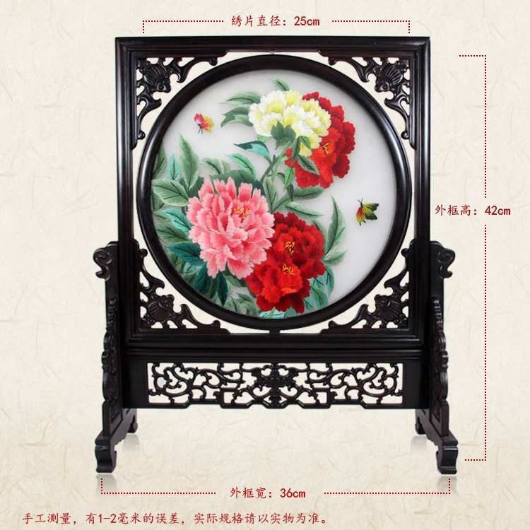 Ou embroidered peony blossoms rich and noble decorative painting double-sided embroidered red sandalwood ornaments pure hand embroidery high-end craft gifts ornaments gifts