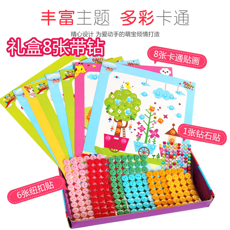 Creative Kindergarten Buttons PAINTING DIY HANDMADE MATERIAL BAG WORKS CHILDREN'S CHILDREN'S CHILDREN'S DRAWINGS FLOWERS TO MAKE COLORFUL ADHESIVE PAINTINGS