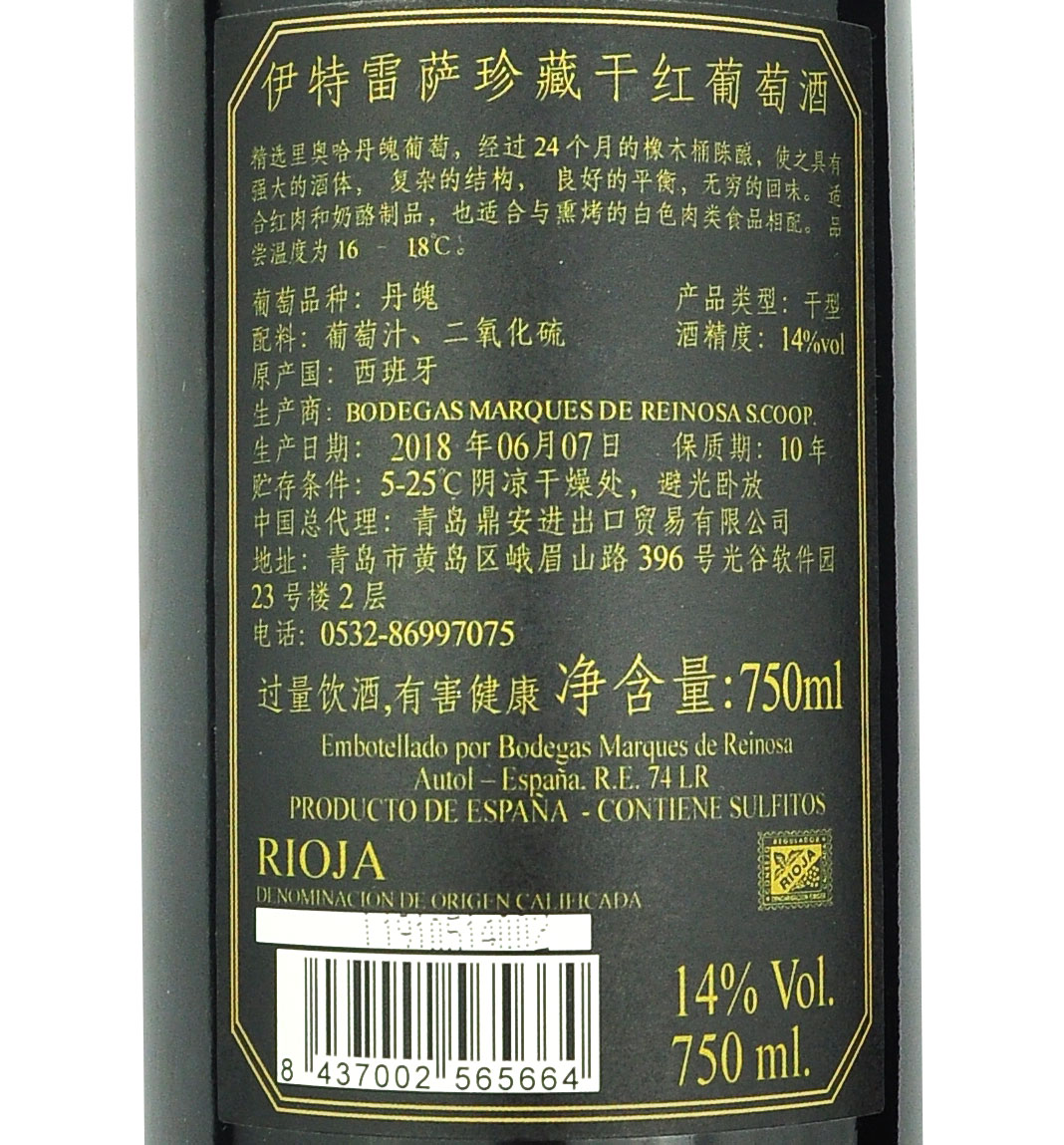 Itresa Etilisa dried red wine 750ml Spain RIOJA Rioha DOC-class area