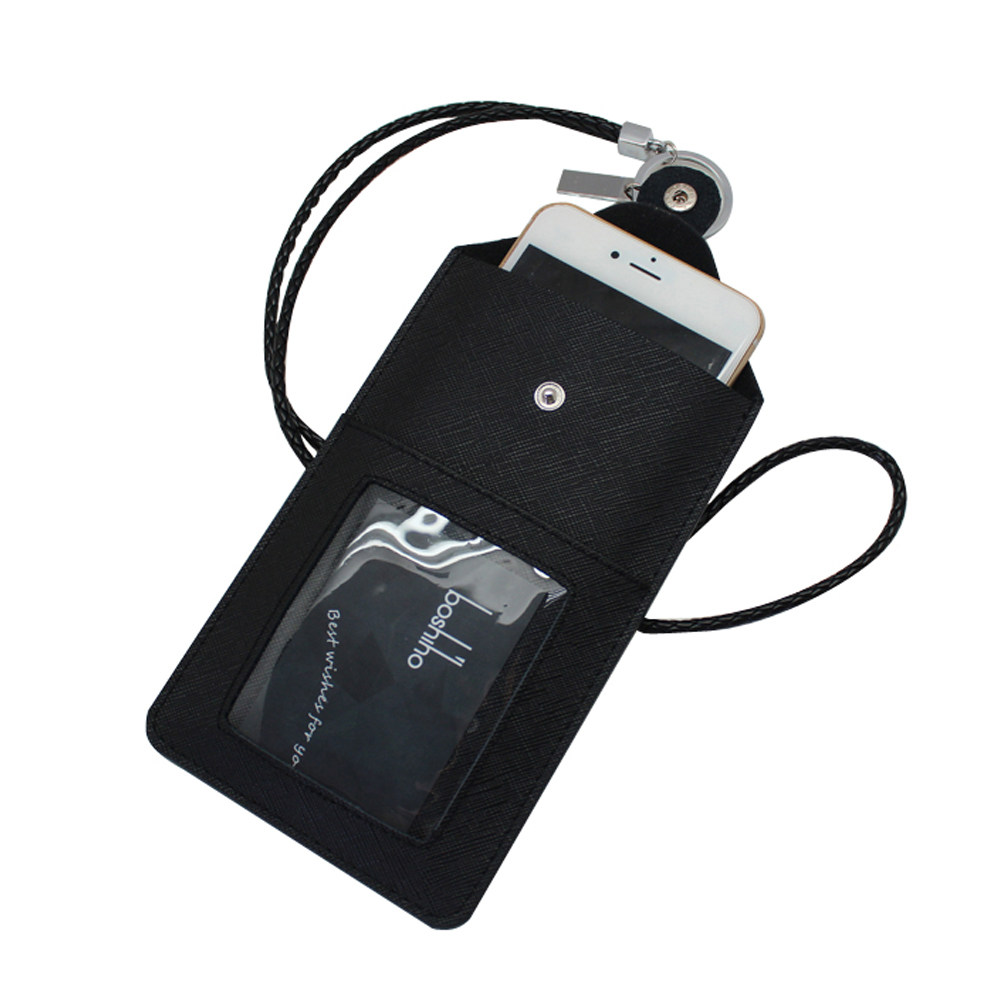Genuine leather work certificate exhibition chest card cutting sleeve mobile phone leather sleeve guide travel proof leather sling can put 5 inch mobile phone-Taobao