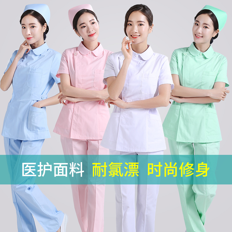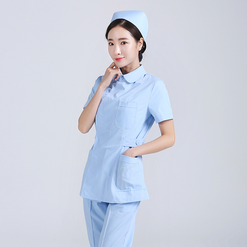 Nurse Serving Summer Short Sleeve Woman Two-piece Style Suit Powder Green Blue White Beauty Master's Sister-In-Law Doll Collar Workwear