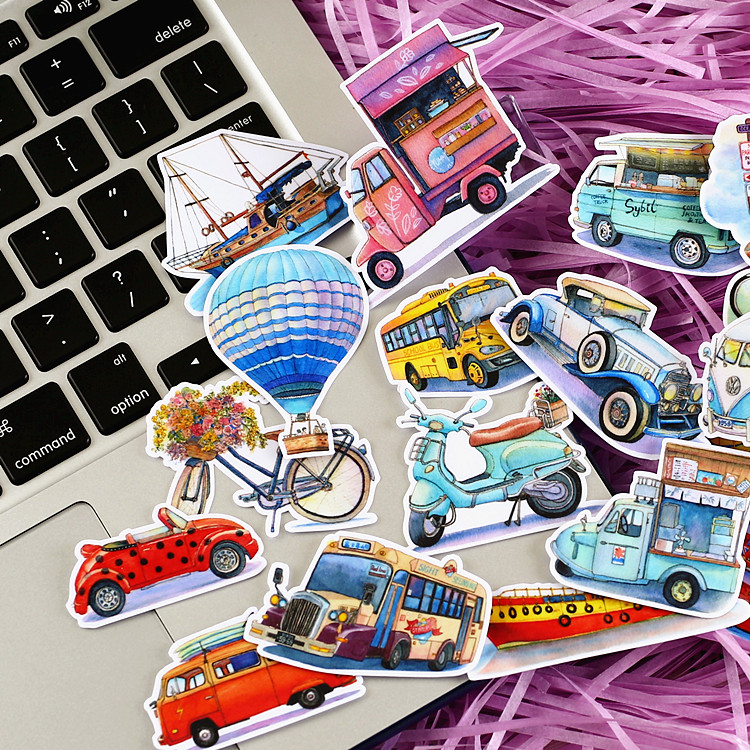 Handbook stickers retro literary small fresh diary photo album stickers full of 38 vehicles