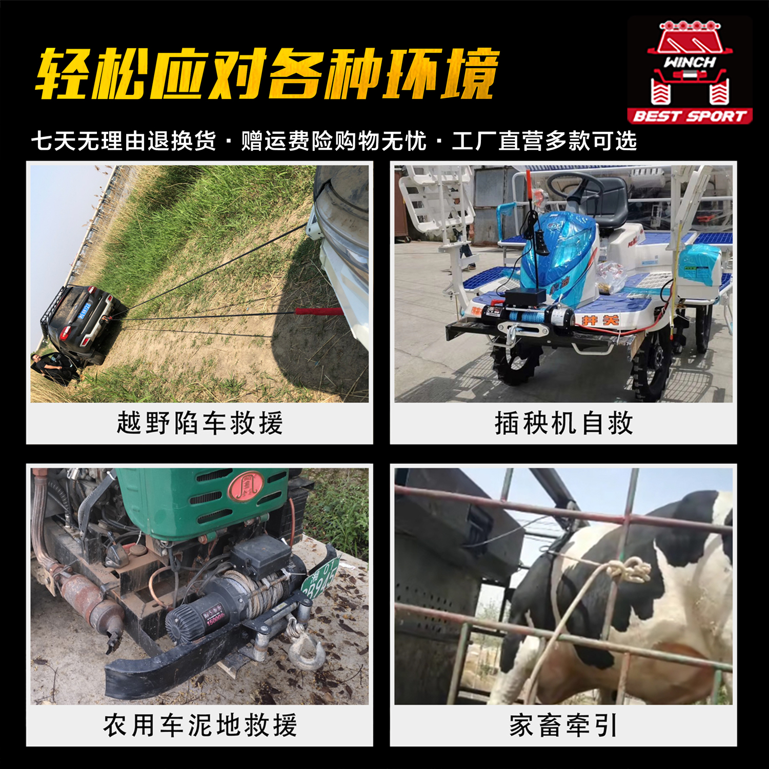 Vehicle with 12V24V portable vehicle off-road self-rescue electric lifting winch gourd hoist crane small crane pull net