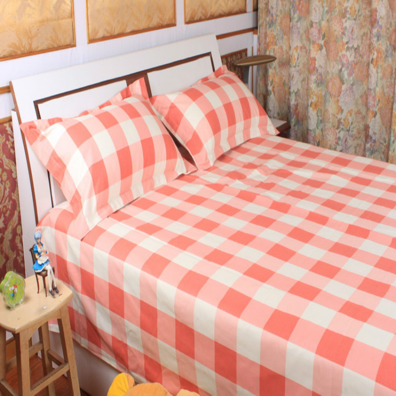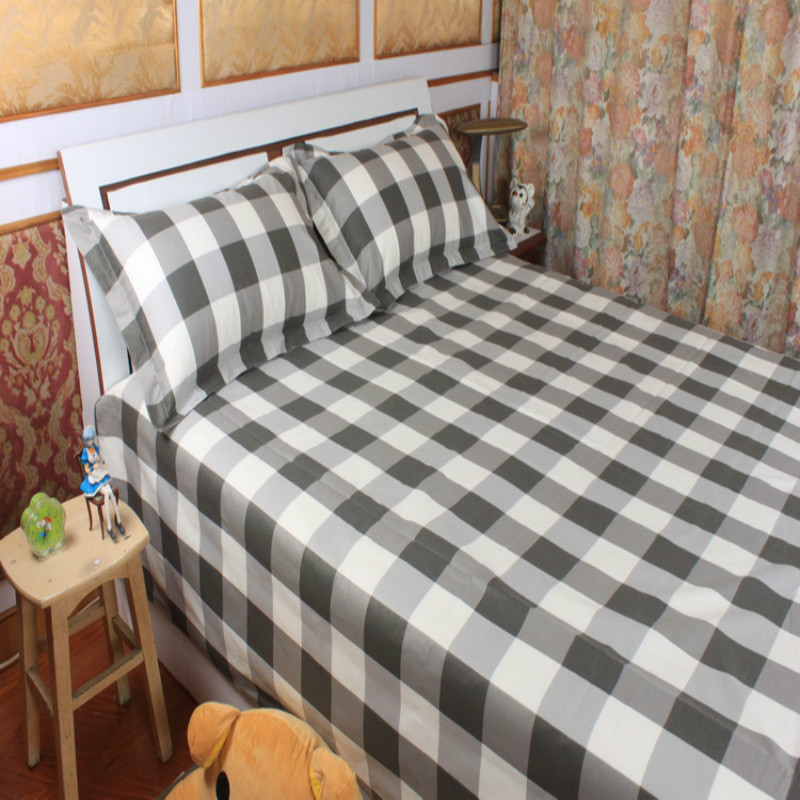 New thicker canvas small rough four-season cloth double bed linen with pillow-sleeve square grid