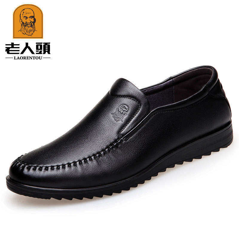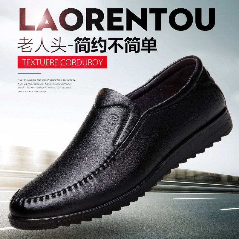 Old man's head leather shoes men's shoes gush warm genuine leather mid-age business casual shoes Soft bottom soft face sleeve footed dad shoes