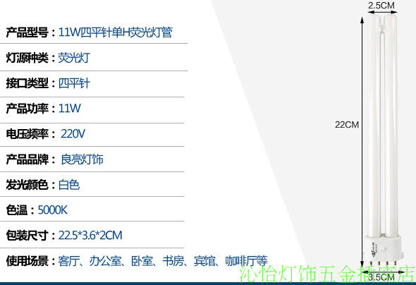 11W square (22 cm) 11W two-pin (23 cm full length)