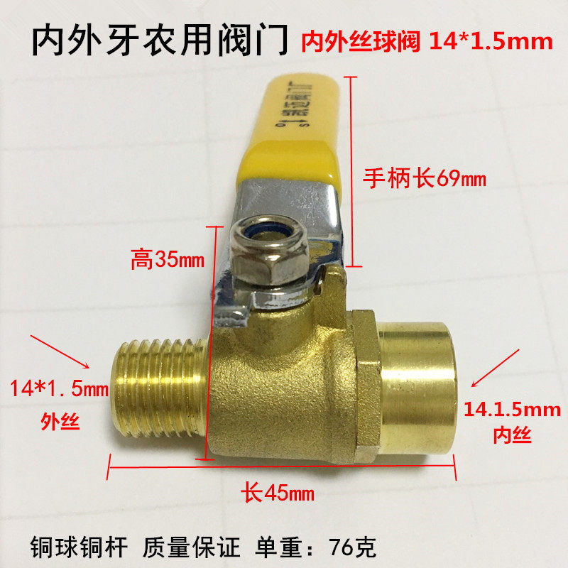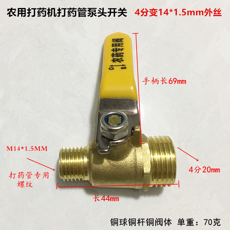 Agricultural sprayer sprayer spray pump accessories 2 points inner and outer wire high pressure pipe ball valve copper 1 2 turn 14*1 5