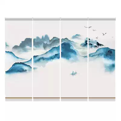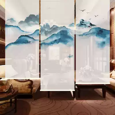 Modern new Chinese ink mountain river scenery artistic conception screen partition retro national wind guest dining room bedroom roller blind