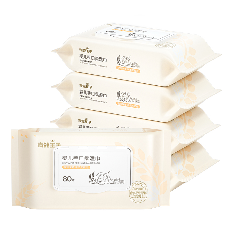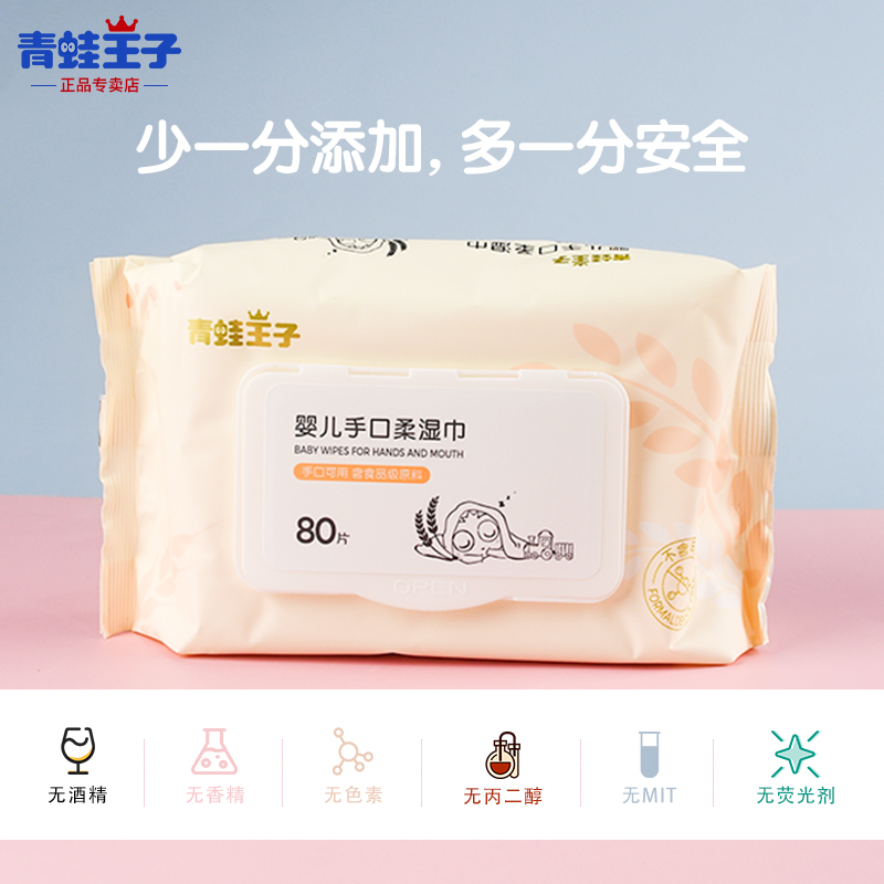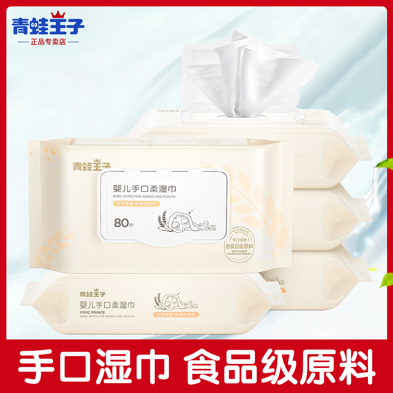 Frogs Prince baby wet wipes big bag with cover hand-mouth special 80 smoke big spec to load baby newborn wet paper towels